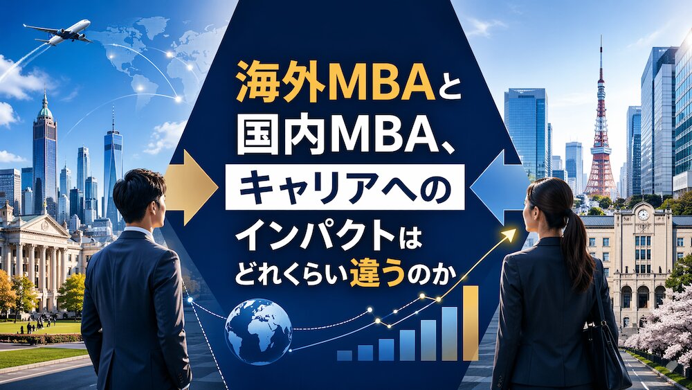 「海外MBAは年収が爆上がりする」「国内MBAはコスパがいい」。ネットにはこの手の情報がたくさんあります。ただ、断片的な数字だけを見ても判断は難しい。大事なのは、自分のキャリアゴールに対してどちらが効くのか、そのインパクトの中身を理解することです。